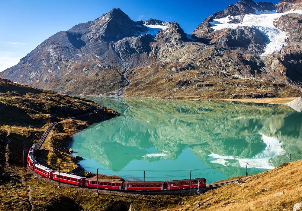 İsviçre, Bernina Express’in en uzun kısmını oluşturur ve doğa severler, fotoğraf tutkunları ve dağ aşığı gezginler için adeta bir cennettir.