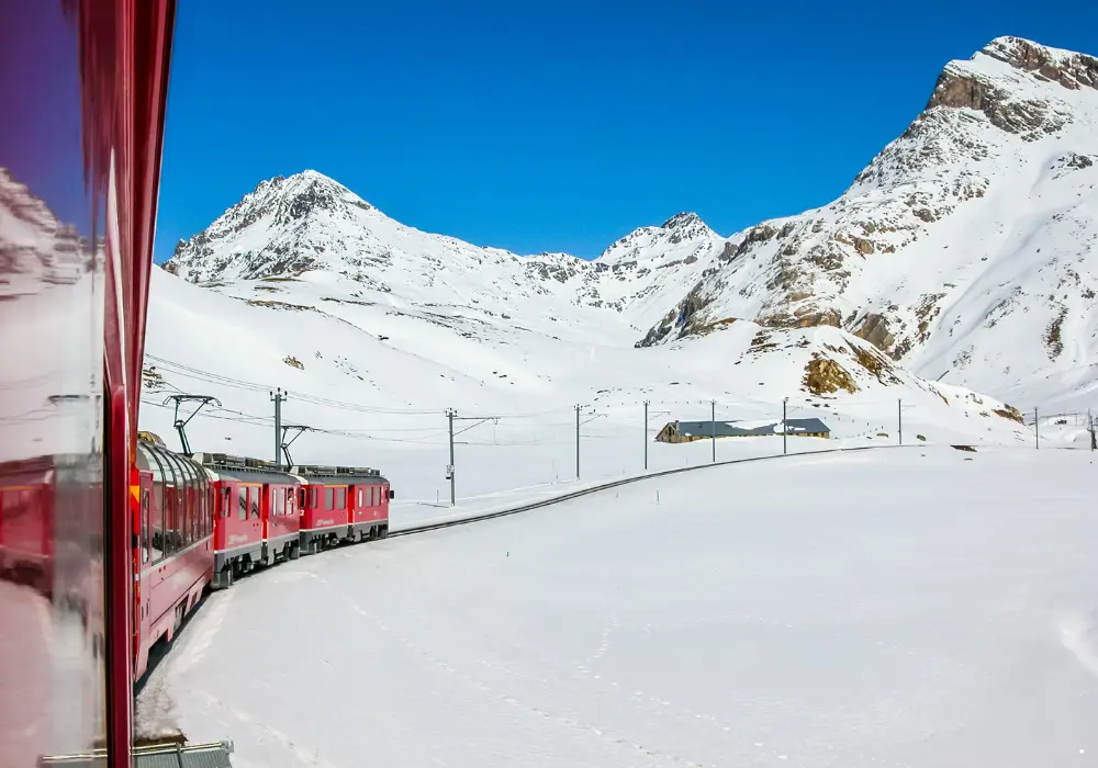 Bernina Express treni, İsviçre'nin Chur şehrinden başlayarak, İtalya'nın Tirano kasabasına kadar uzanmakta yaklaşık 4 saatlik bir tren yolculuğudur. Yol boyunca 55 tünelden, 196 köprüden ve 2.253 metre rakımdaki Bernina Geçidi’nden geçilmektedir.